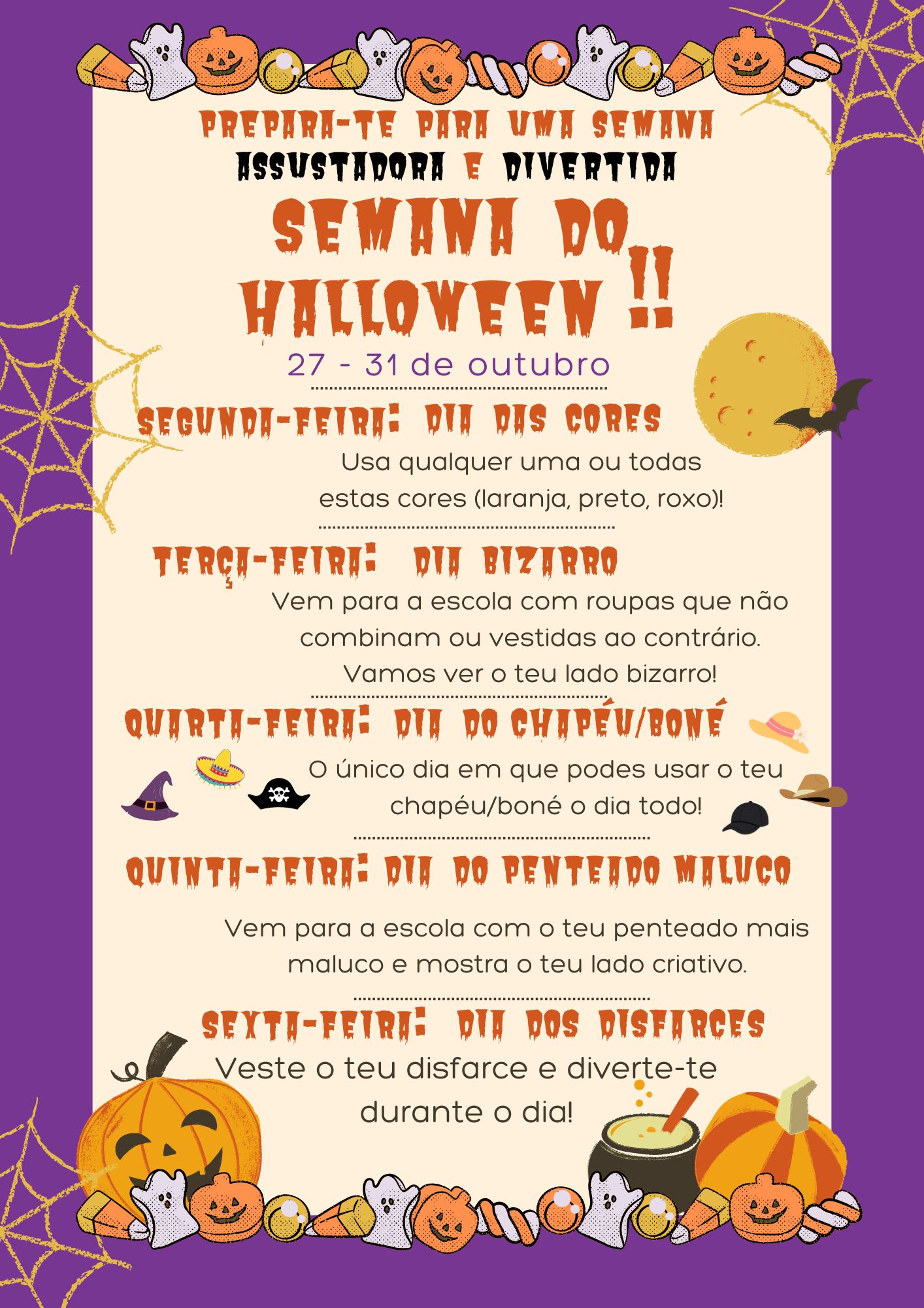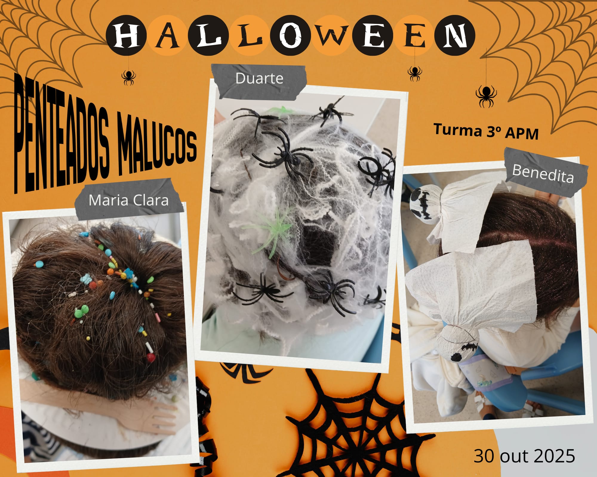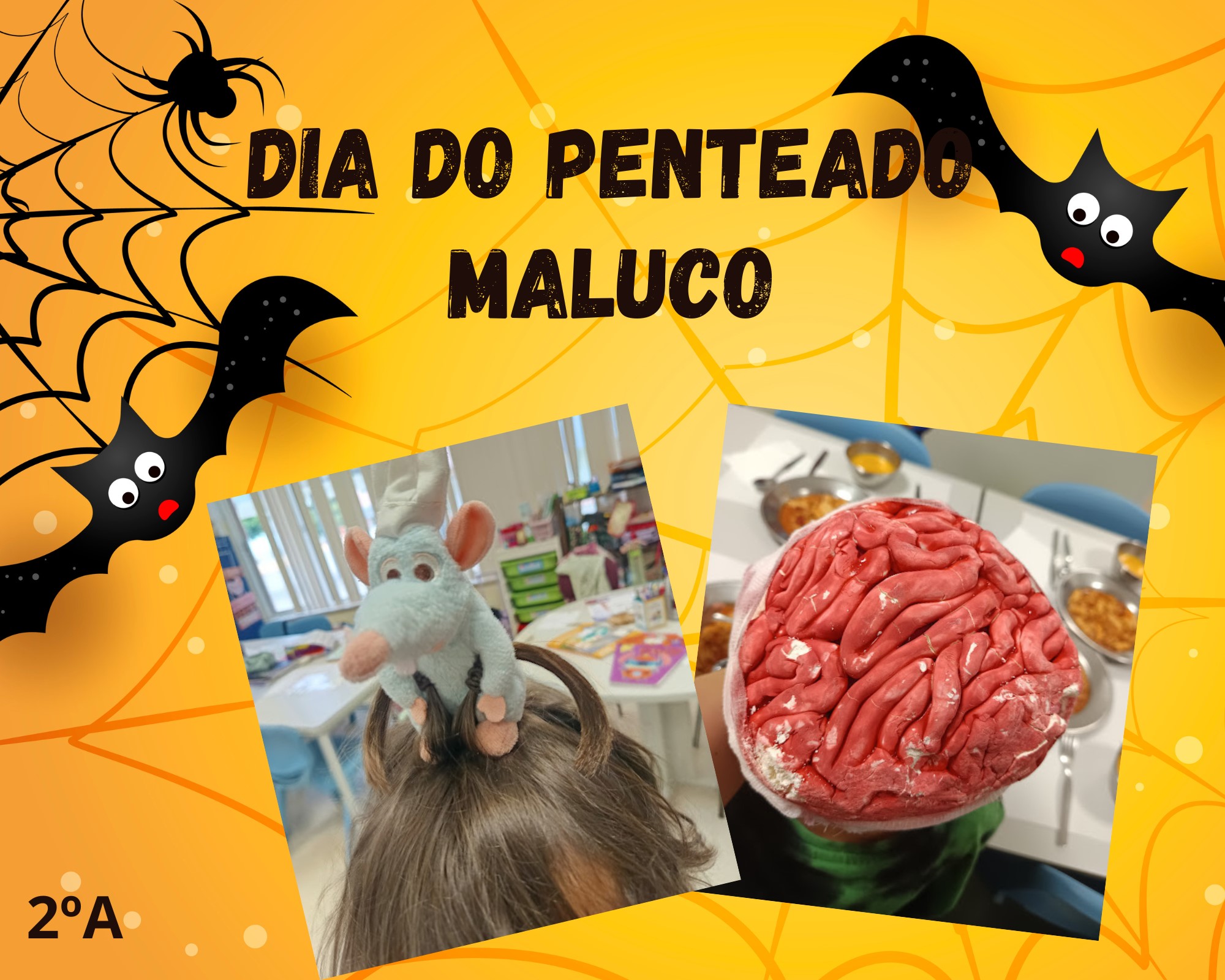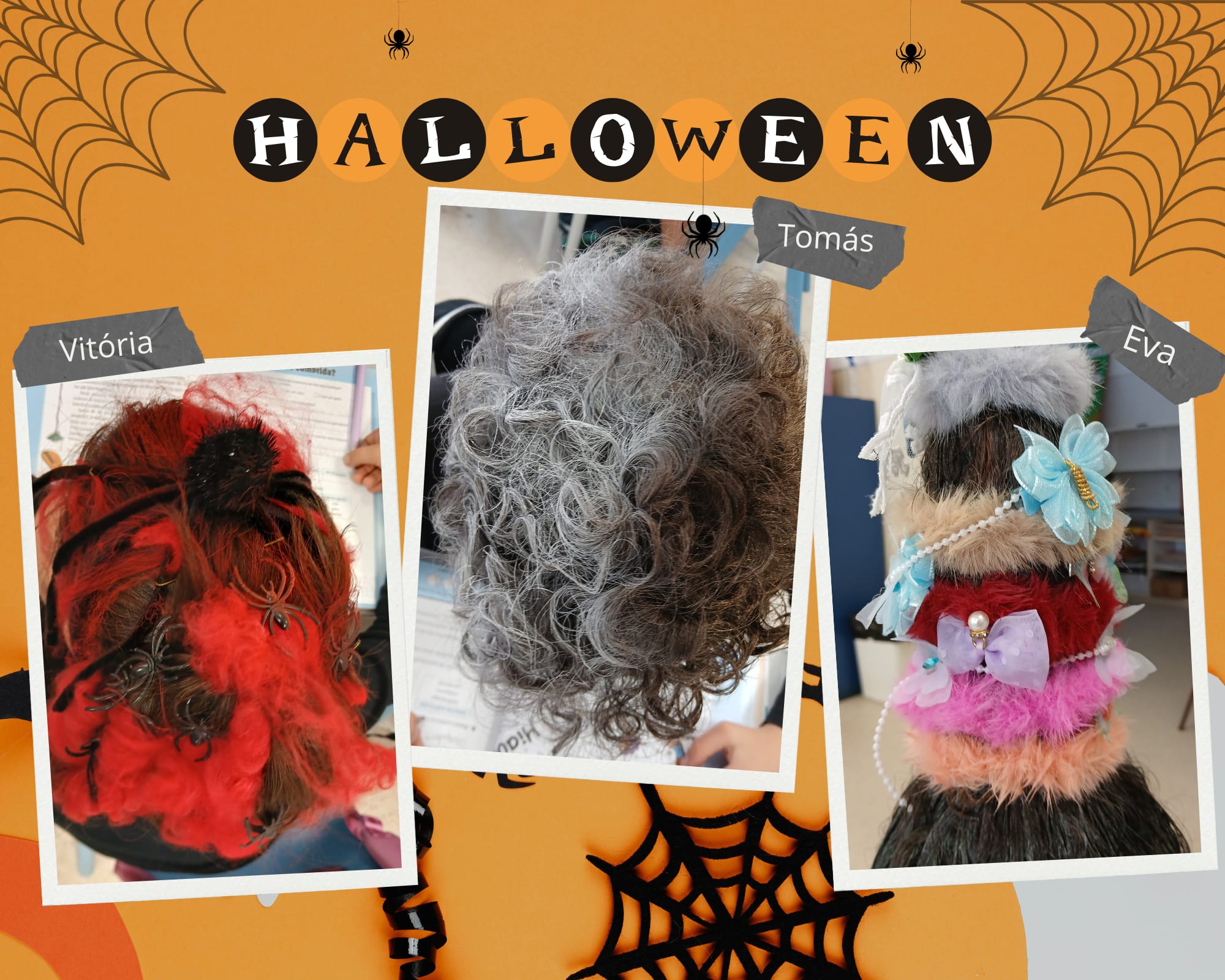 No âmbito das atividades da Semana do Halloween, os alunos, da EB Pedra Mourinha, voltaram a surpreender com a sua imaginação e espírito festivo. O desafio do dia 30 de outubro consistia em vir para a escola com penteados originais inspirados no Halloween, e o resultado não poderia ter sido mais divertido!