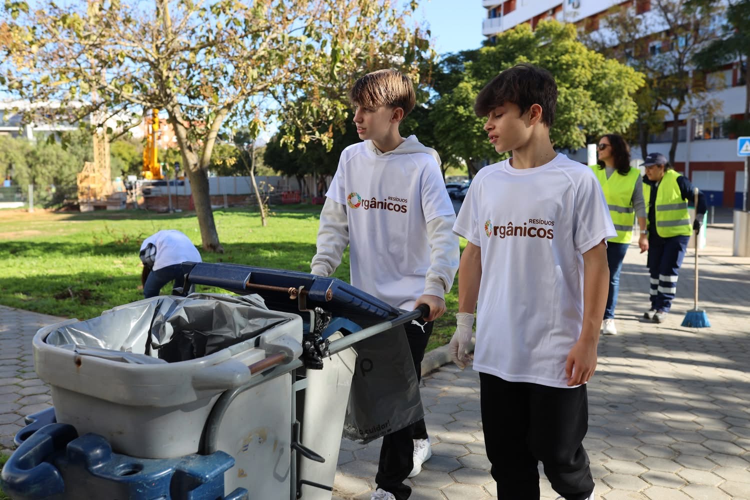 A iniciativa integrou a turma C do 8ºano da Escola E.B. 2,3 Júdice Fialho, que prestou apoio à cantoneira no seu trabalho diário de recolha de resíduos nas áreas envolventes e a sua correta deposição nos ecopontos.