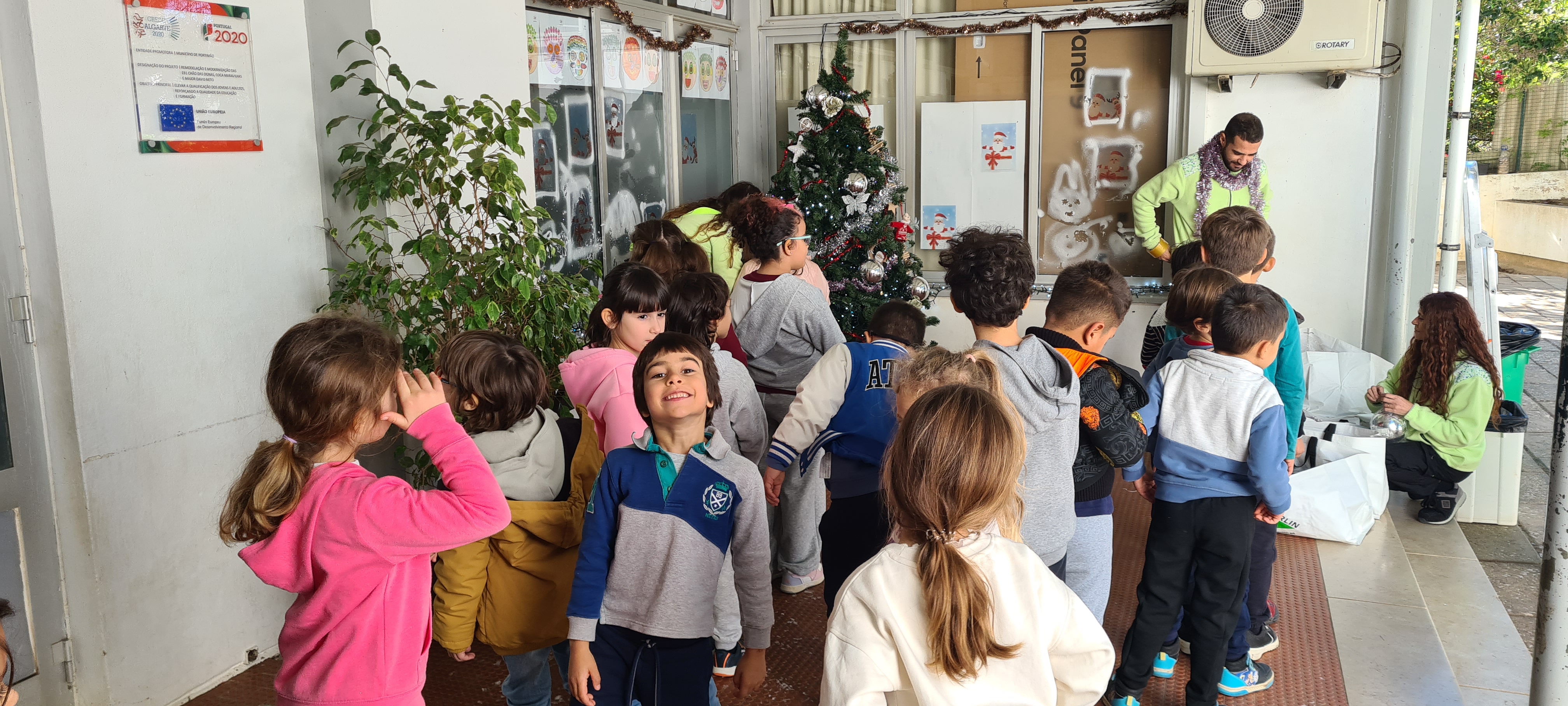 A atividade contou com o apoio da Leroy Merlin, que disponibilizou a árvore e os materiais necessários para a decoração, garantindo que todas as turmas tivessem acesso aos mesmos recursos. Para tornar o momento ainda mais especial, três colaboradores da Leroy Merlin estiveram presentes na escola, orientando e dinamizando a atividade com os alunos. A experiência foi recebida com grande entusiasmo pelas crianças, que demonstraram criatividade e espírito de equipa.