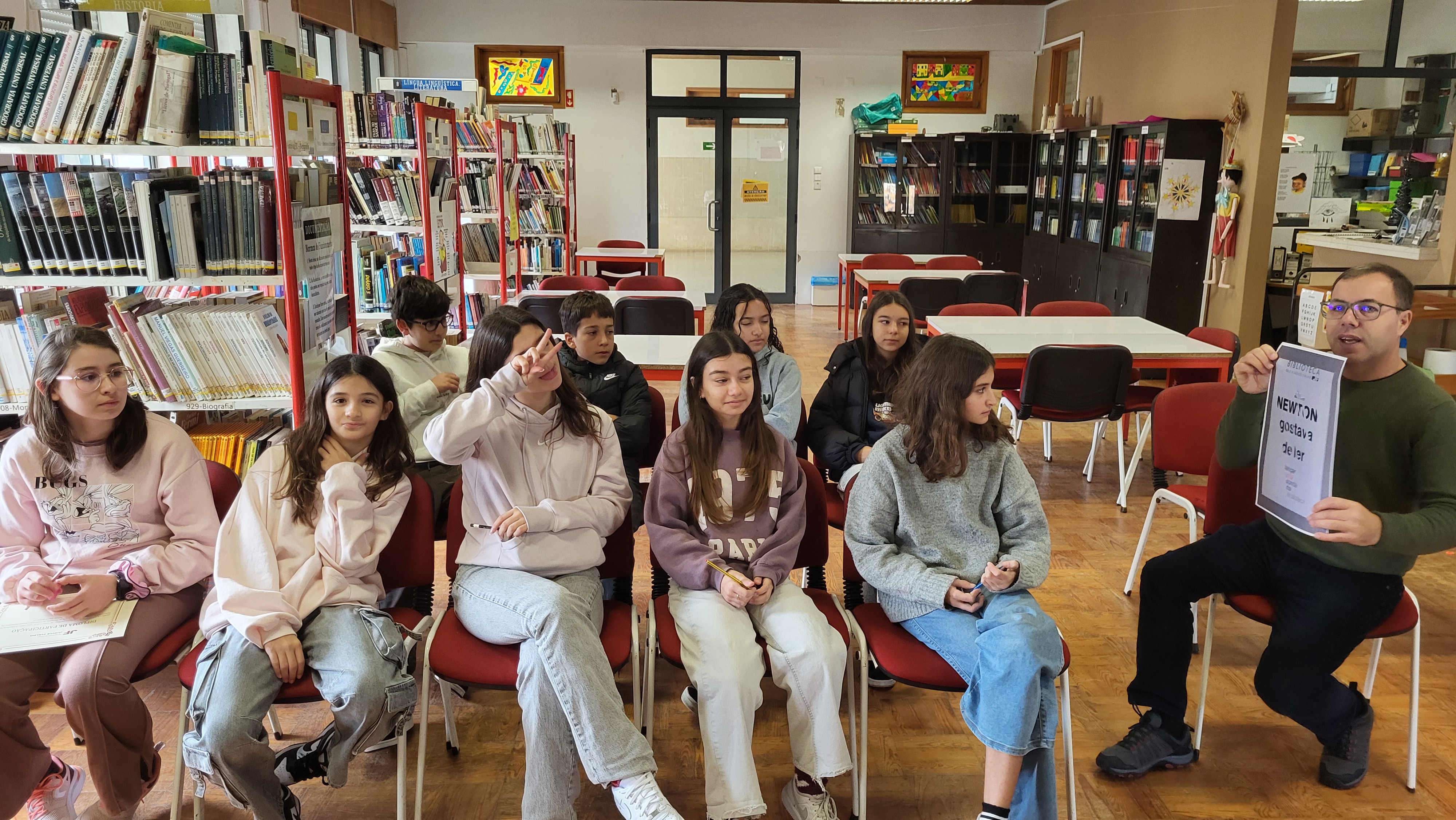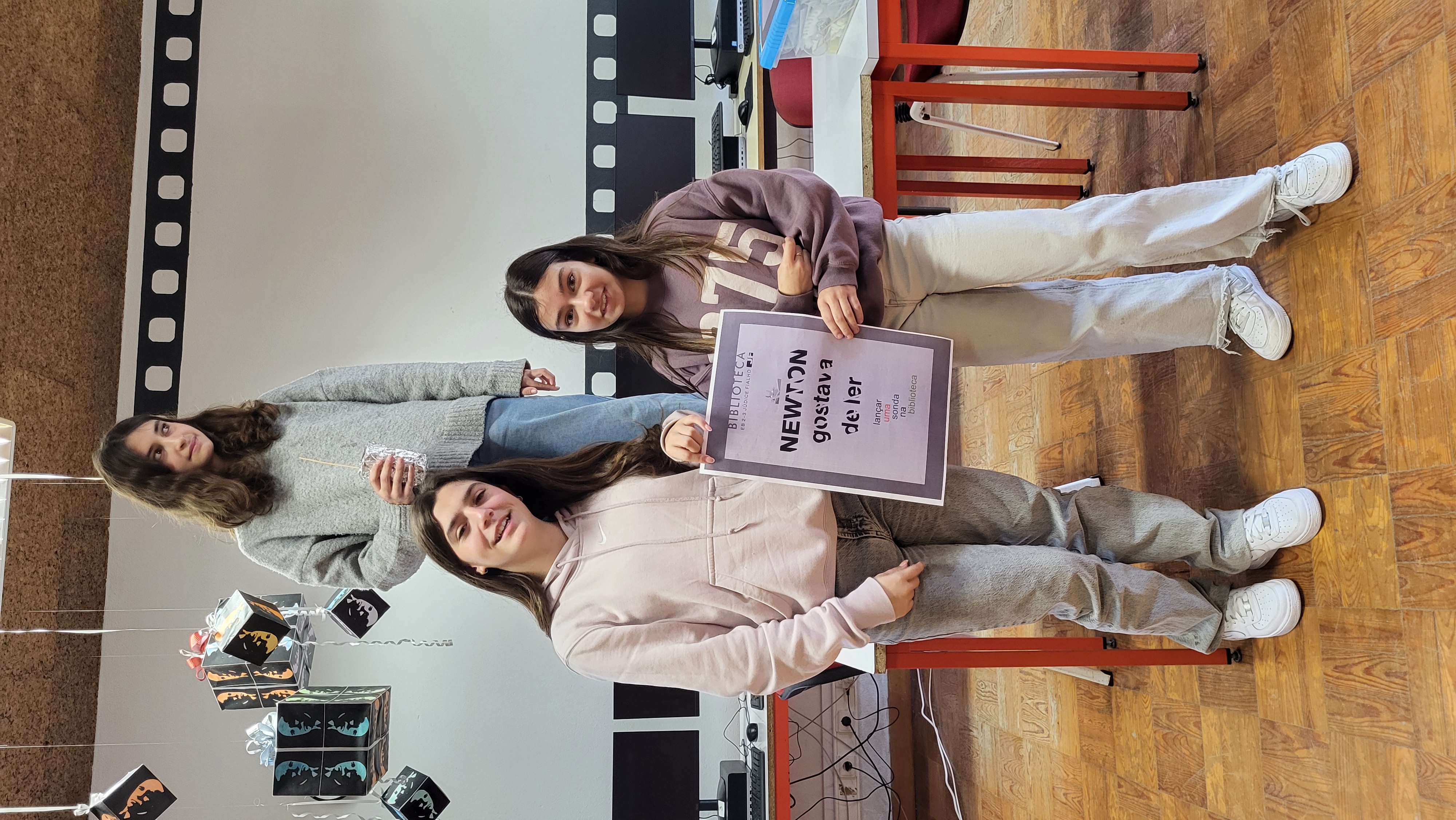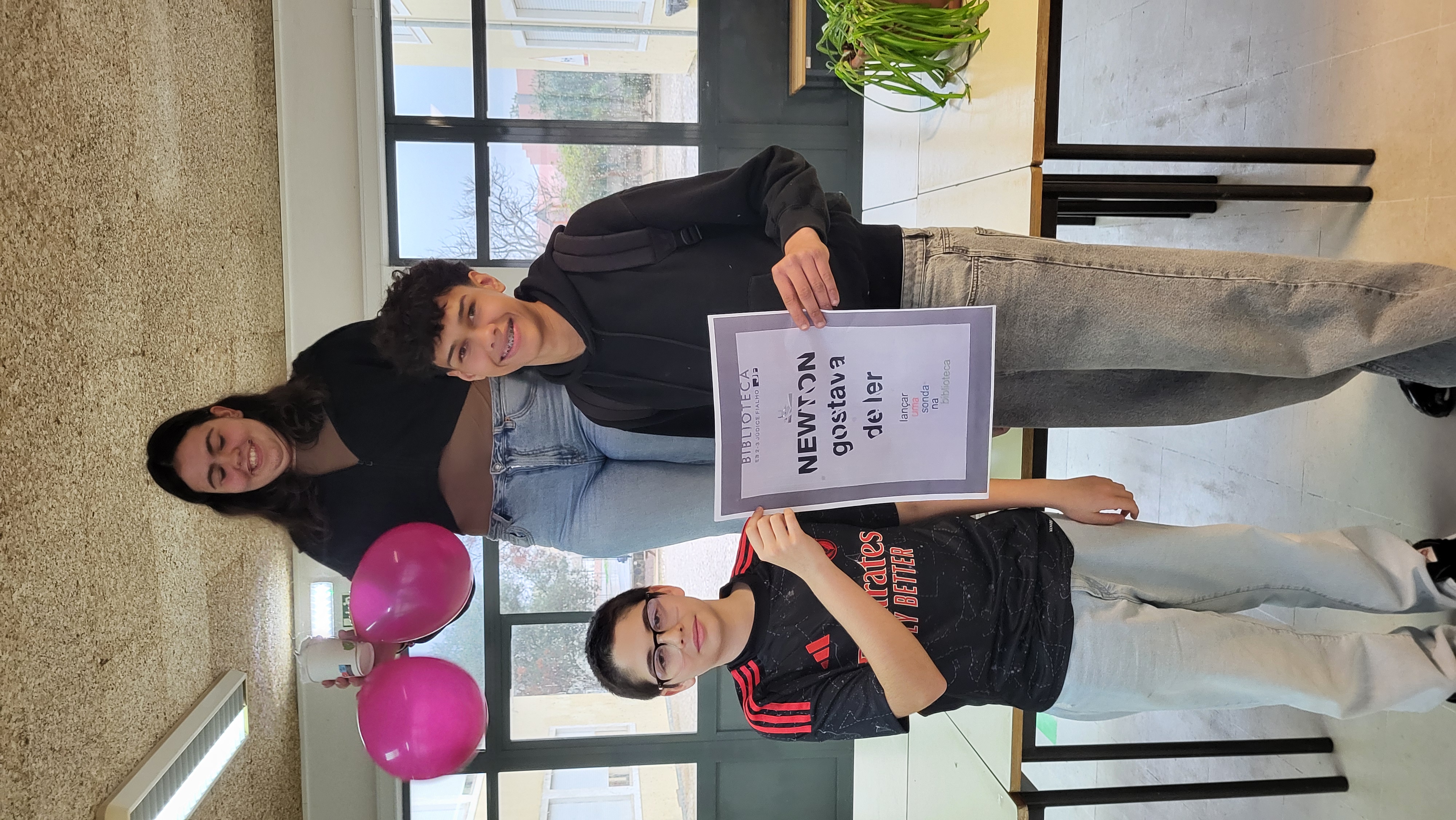 No âmbito do projeto “Newton Gostava de Ler” realizou-se a atividade “3,2,1… lançar sonda na biblioteca”, dinamizada pela docente de Físico-Química, Sílvia Sousa, em colaboração com a Biblioteca Escolar, com a participação de todos os alunos do 7.º ano.