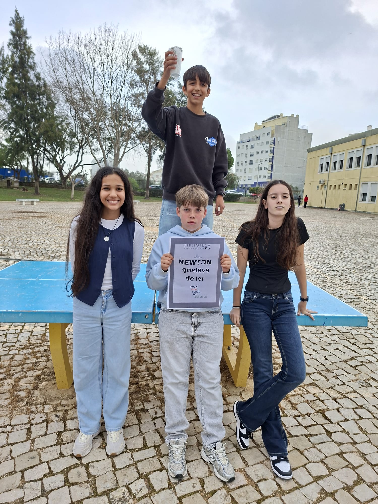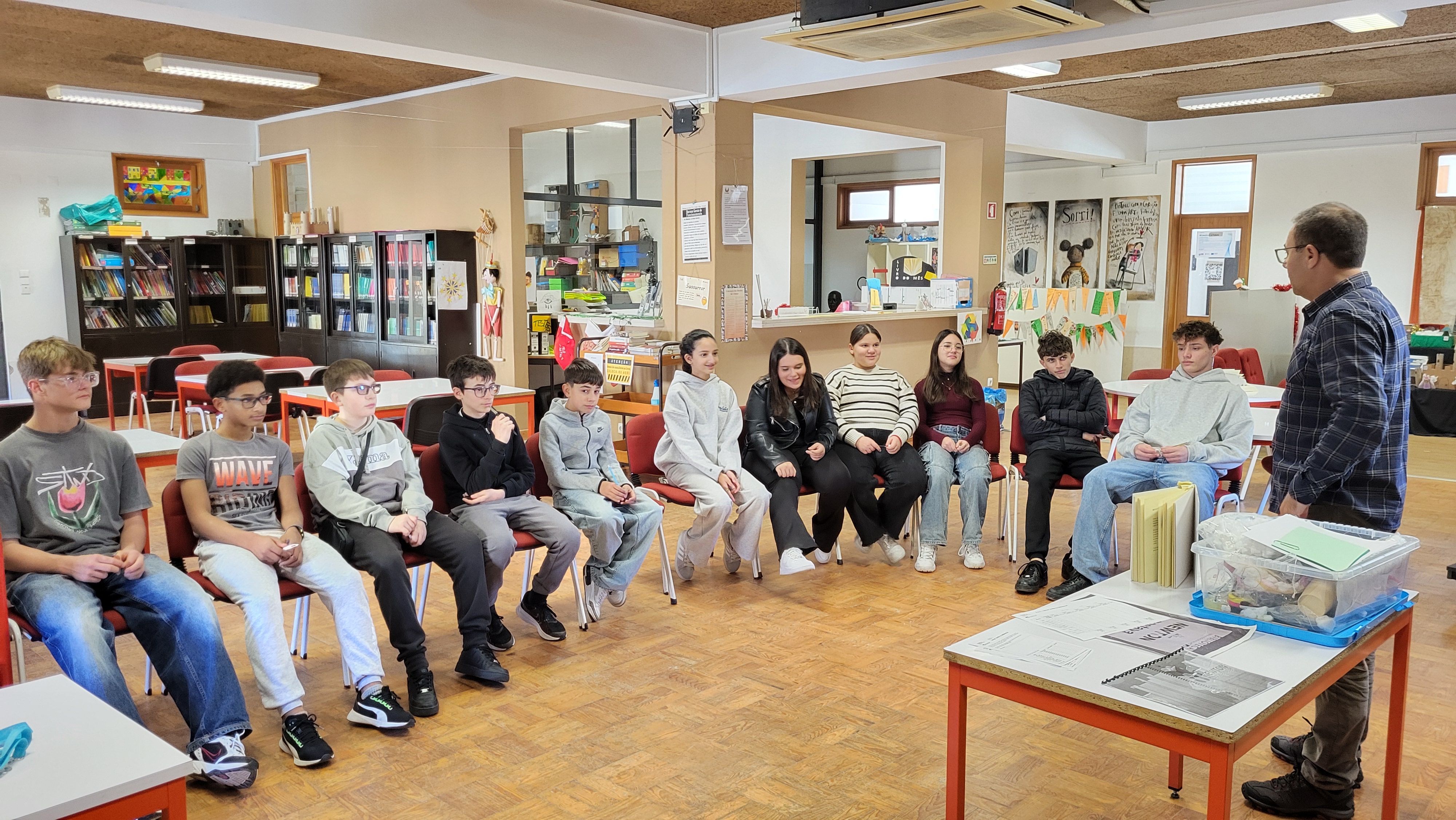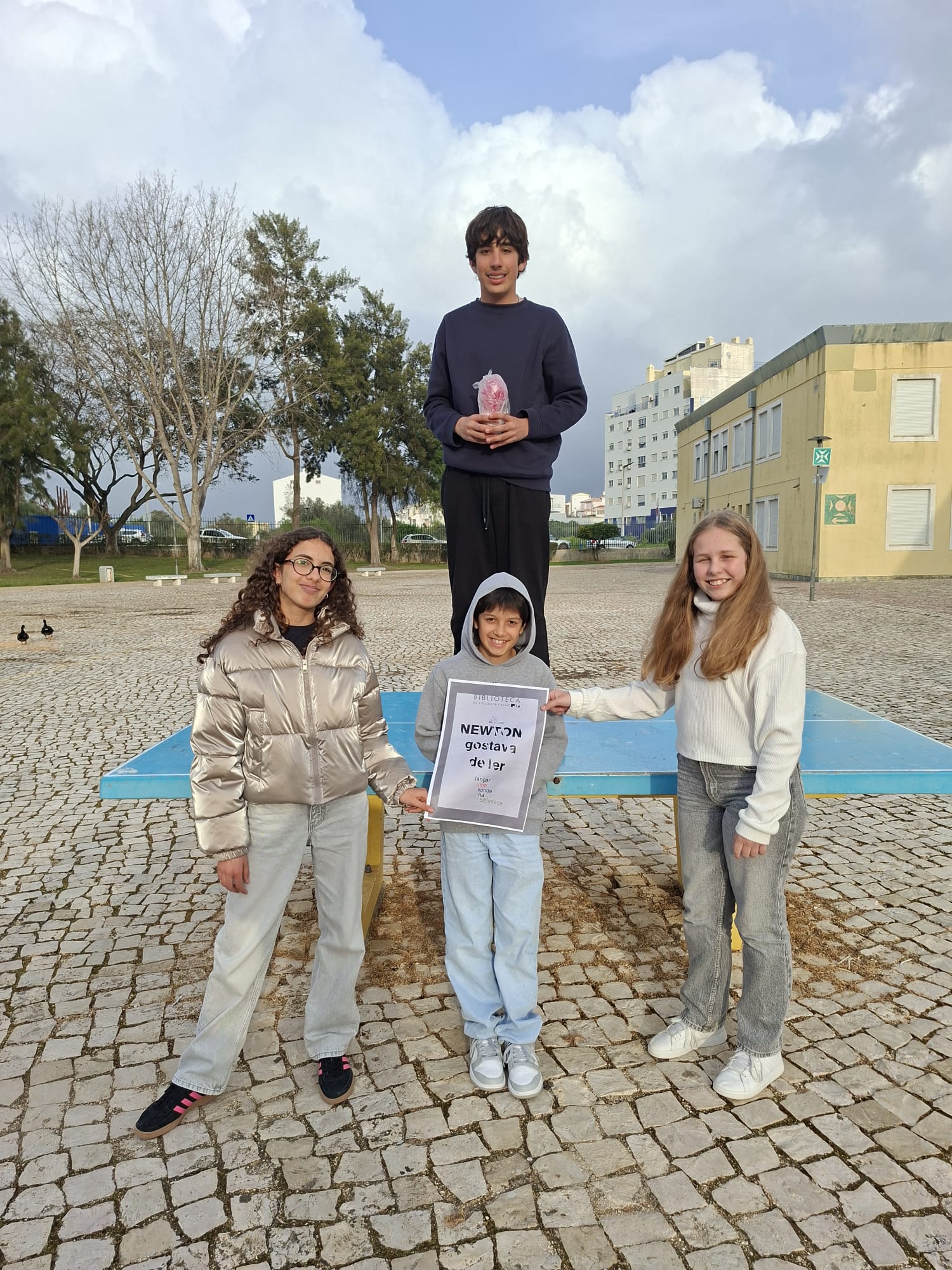 No âmbito do projeto “Newton Gostava de Ler” realizou-se a atividade “3,2,1… lançar sonda na biblioteca”, dinamizada pela docente de Físico-Química, Sílvia Sousa, em colaboração com a Biblioteca Escolar, com a participação de todos os alunos do 7.º ano.